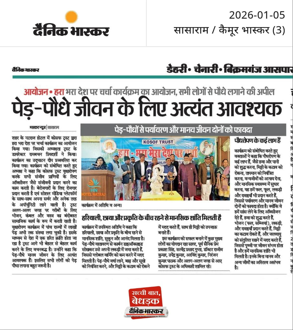 Pollution, drought, extreme heat, chemical-filled vegetables, rising diseases, and unemployment have deeply affected everyday life. To bring relief and create a healthier, greener, and safer India, KOSOF TRUST has launched GREEN WAY, a mission for natural farming, tree plantation, and social upliftment.